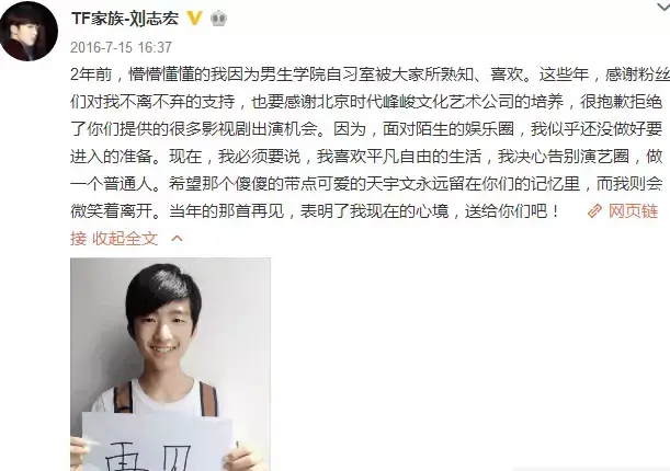 然而,事情当然不会这么简单啦,因为在刘俊昊加入公司三天后,公司早期练习生刘志宏发微博表示自己喜欢平凡自由的生活,所以决心告别演艺圈。