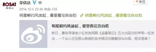 四大流量之一的杨洋,和老东家荣信达的解约也是闹得满城风雨。