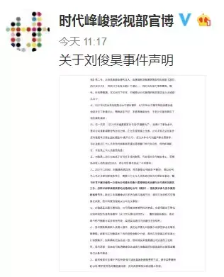 昨天,时代峰峻影视部官博对于刘俊昊的控诉也做出了回应。
