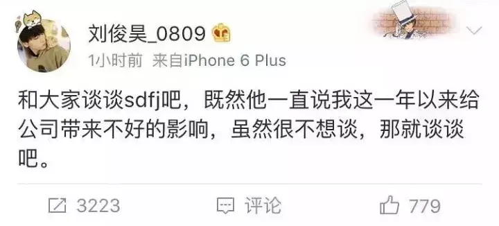看到这条微博,大家应该会好奇为什么公司一直说刘俊昊给公司带来不好的影响呢?