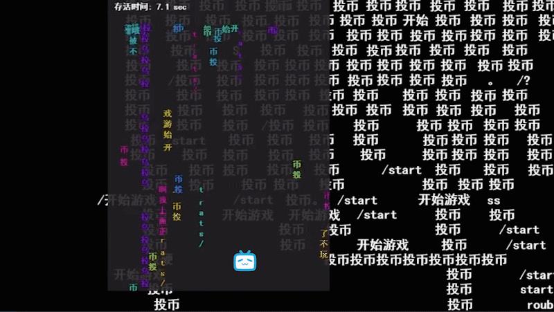 发送“投币”后,屏幕上就会出现弹幕游戏,可以使用方向键操作小电视躲避字幕