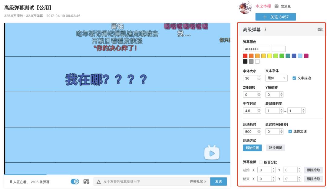 想尝试的朋友,可以自行搜索“高级弹幕测试”视频,申请权限