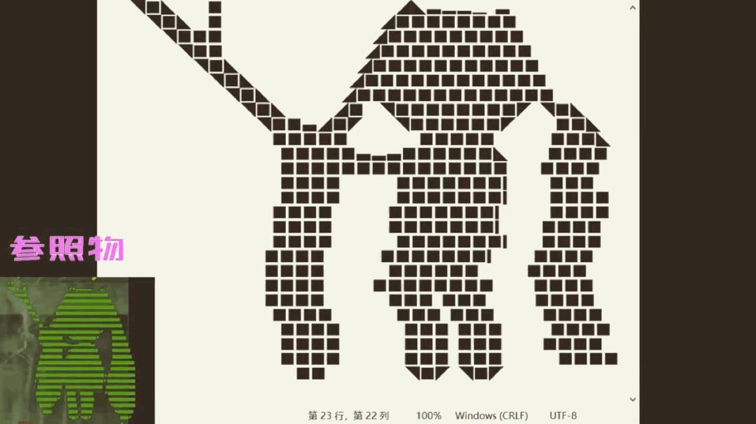 由于没有专用的可视化工具,所以大部分弹幕作品,都是在记事本中手写出来的。在制作过程中,哪怕遇到微小的行间距、字体大小差异,都会影响最终的图形效果。