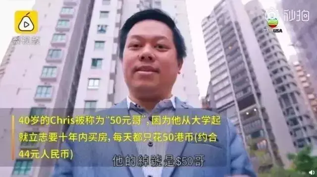 40岁的Chris为一家贸易公司的老板,收入相较于一般港漂青年要可观多。然而,在买房前他过了八年每天花销控制在50港元内(50港元在香港有的都不够一碗面钱)