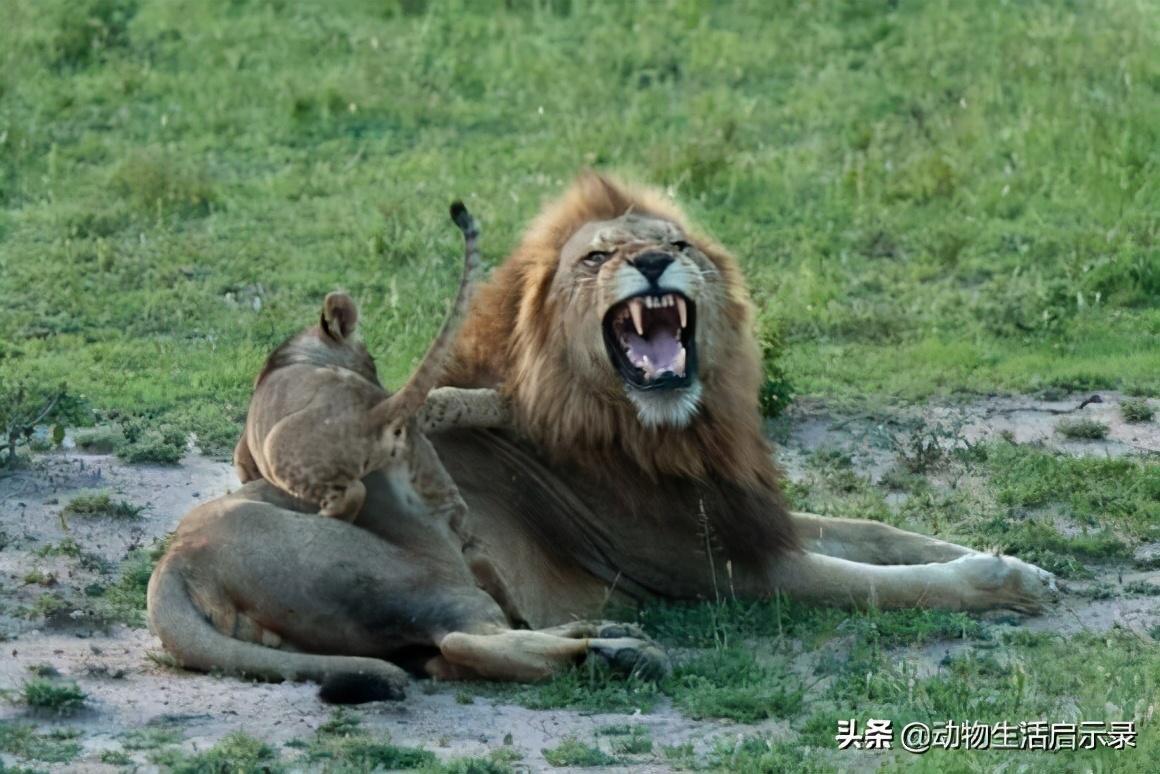 幼崽骑在疤臀身上,狮王假装愤怒
