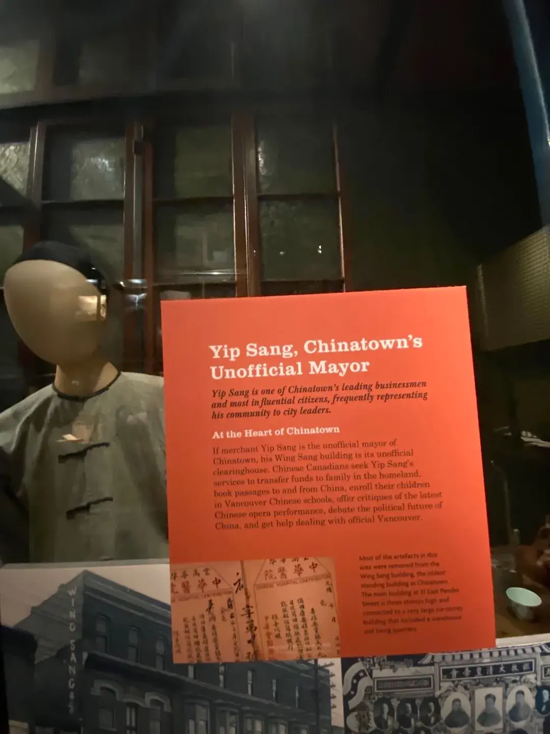 叶先生在展览中被介绍为“唐人街的非官方市长”,商界领袖、极具影响力的华裔市民。他在51 E Pender街创建的永生大厦(Wing Sang)是加拿大华人当时经常光顾的地方,向国内汇款、购买来往中国的船票、给孩子注册中文学校、评论最新中国戏剧、辩论中国的政局,与温哥华政府打交道时获得帮助。