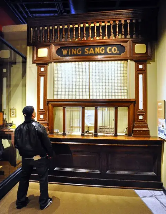 1987年叶生的后裔进行翻新时,永生大楼的这个柜台从1889年的大楼搬到了温哥华博物馆。这里是华人移民将电报和钱汇回中国的地方。图片来源: LES BAZSO /00050820A SUN
