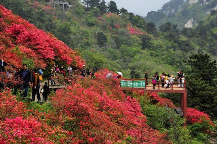 鸡冠山野生杜鹃资源丰富,山杜鹃、小叶杜鹃、牛皮杜鹃、高山小叶杜鹃、毛皮杜鹃等遍布全山。尤其是吉乐岭两侧的山坡、山脊和悬崖边上,呈现出气魄壮丽的杜鹃花海景观,面积达205公顷。春季盛开时节,沿途而赏,姹紫嫣红,灿烂夺目,如云锦,似红霞。