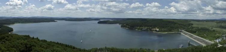 位于梅河口市西南,是建于1958年的人工湖。水库的山水以秀著称。山水之秀附以美丽的传说,构成一幅秀美的水乡泽国。主要景点有:东园、西园、蛇山、钓鱼台度假村,梨花湾、金龟戏水、神仙洞、天然鹭岛等。