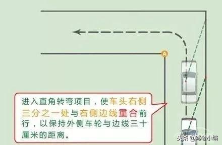 ②30cm边距问题,进入直角转弯前就需要调整车身与边线30cm边距,这一点关于转弯是否压线的问题。