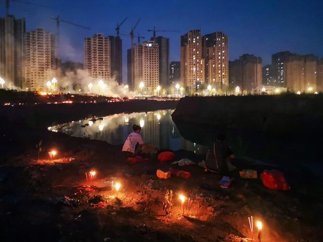 在中元节当天,许多地方的居民都会点燃灯笼,它们有的飘浮在水上,有的在地上随风转动,以此来寄托对祖先的思念与怀念。这样的习俗被称为“放河灯”,是一种传统的民间祈福仪式。