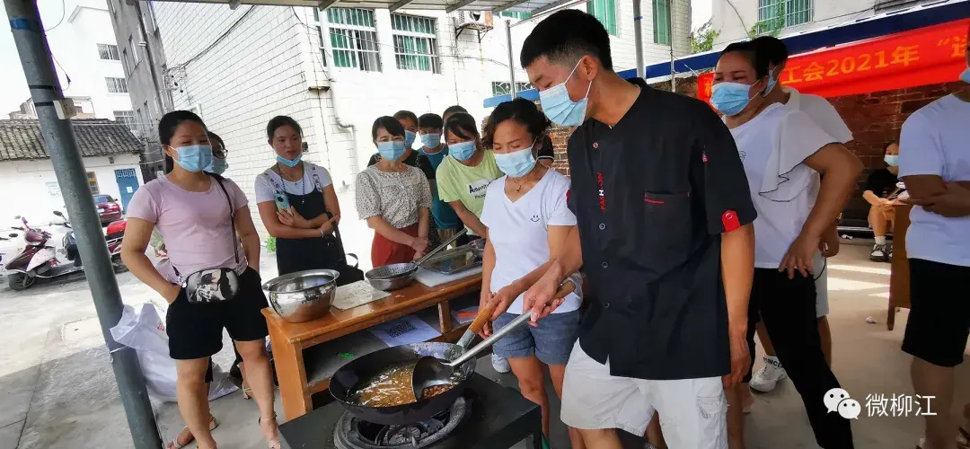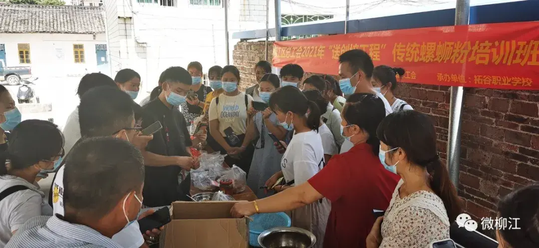 9月4日,柳江区总工会举办2021年“送创培工程”传统螺蛳粉培训班在进德镇文化体育和广播电视站正式开班,来自辖区的30名学员,在家门口免费学习传统螺蛳粉烹饪技能。