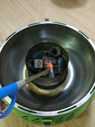 5. 大约3-5分钟,火力燃旺了,就可以放入食材开始烧烤了。