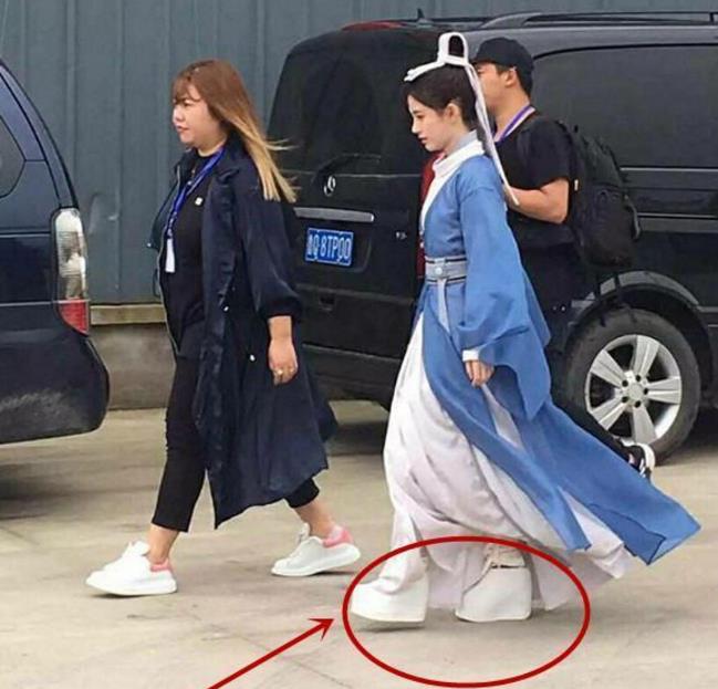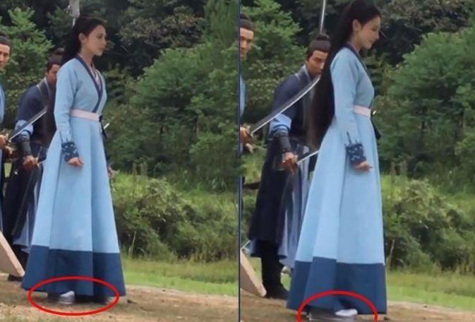 女演员穿着高跟鞋拍古装戏非常的不方便,因为古装戏有时候需要有一些打斗戏,对于演员而言是很辛苦的。