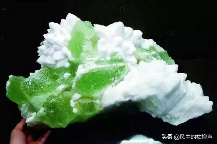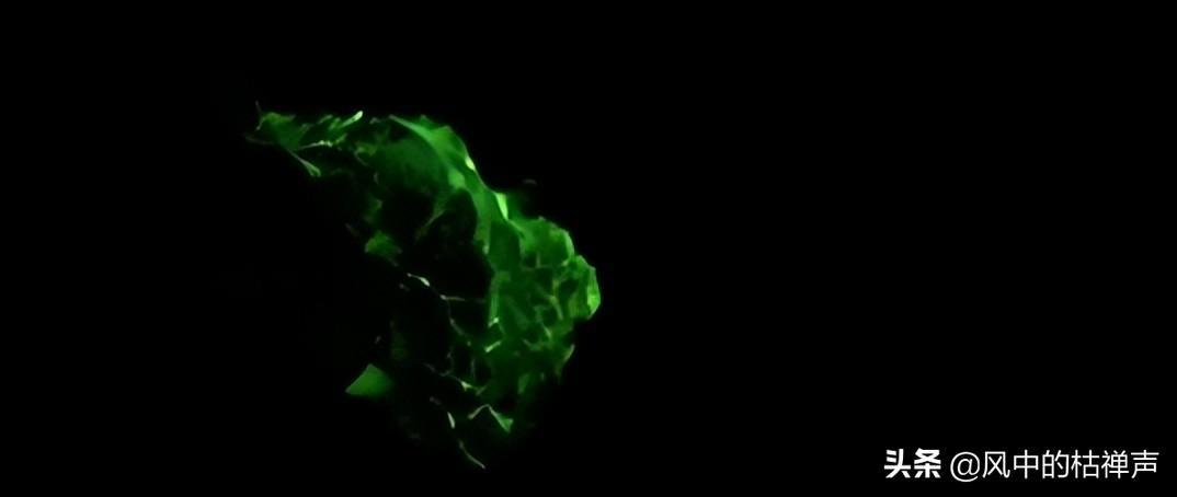 专家们用灯光照射了石头,拿开电筒后发现这块石头发出了绿色的幽光,专家立马知道了,这块石头是一块萤石,这种发光的萤石的主要成分是钙离子和氟离子组成的离子晶体,受到外界灯光影响时,温度和压力产生急剧变化,钙离子立马消失,晶体结构中的空间暂时被其它元素代替,产生一些自由电子,从而导致发光。