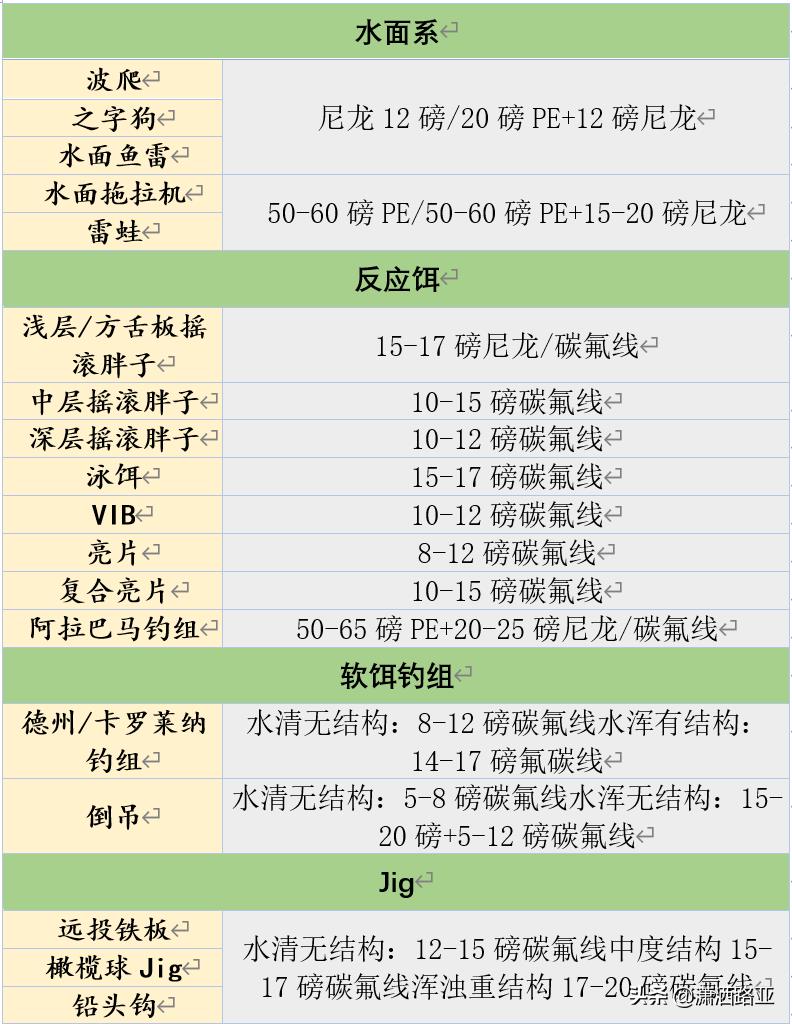 下面分享一些国外职业钓手总结的路亚饵用线指南(仅供参考,根据实际情况和个人理解做出合理优化)