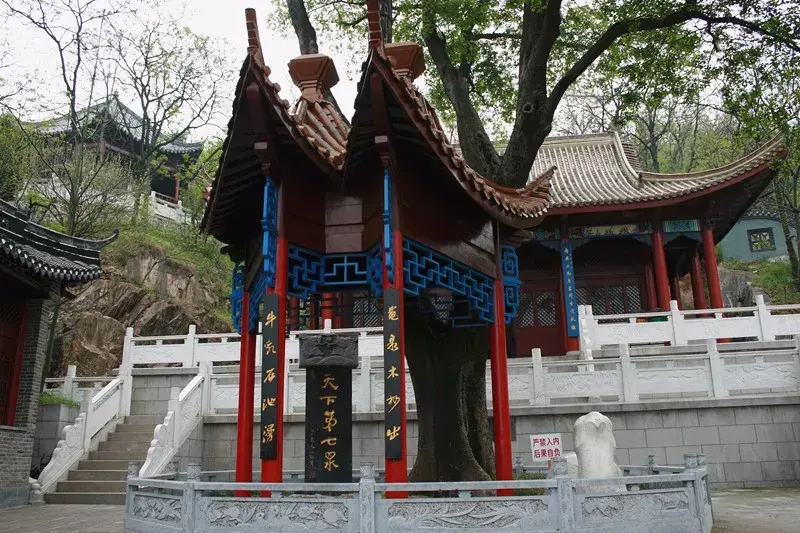 白乳泉景区背依荆山,面临淮水,卞和洞以谷为邻。周围峰峦叠翠,榴林似海,绿树掩映,芳草如茵,是远近闻名的天然佳境。这里曾是文豪苏轼登临之地,他携子游荆涂二山时,见泉水白似牛乳,甘之如饴,可浮起铜钱,赞誉此泉乃“天下第七泉”。