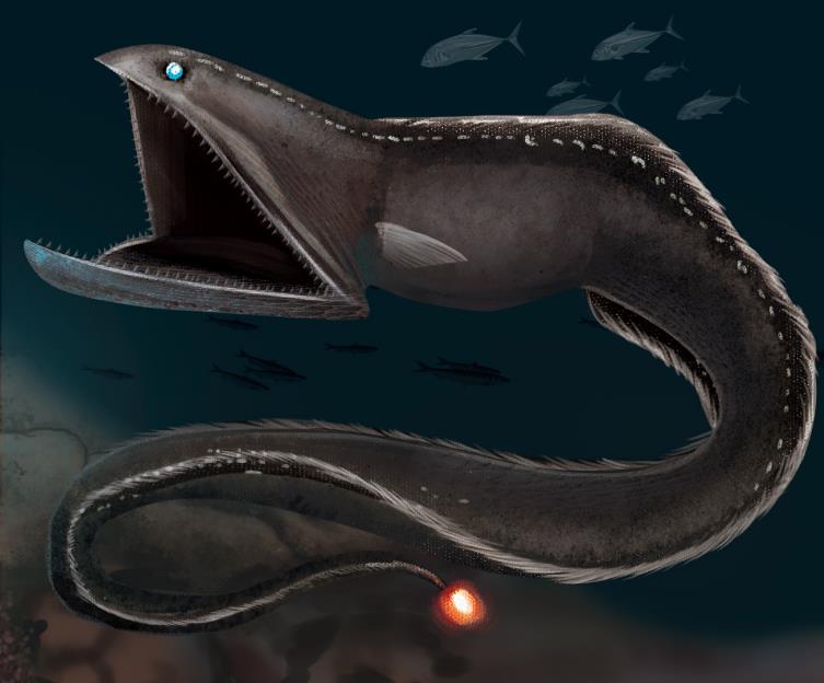 这么看,宽咽鱼像个长着大嘴巴的大蝌蚪。