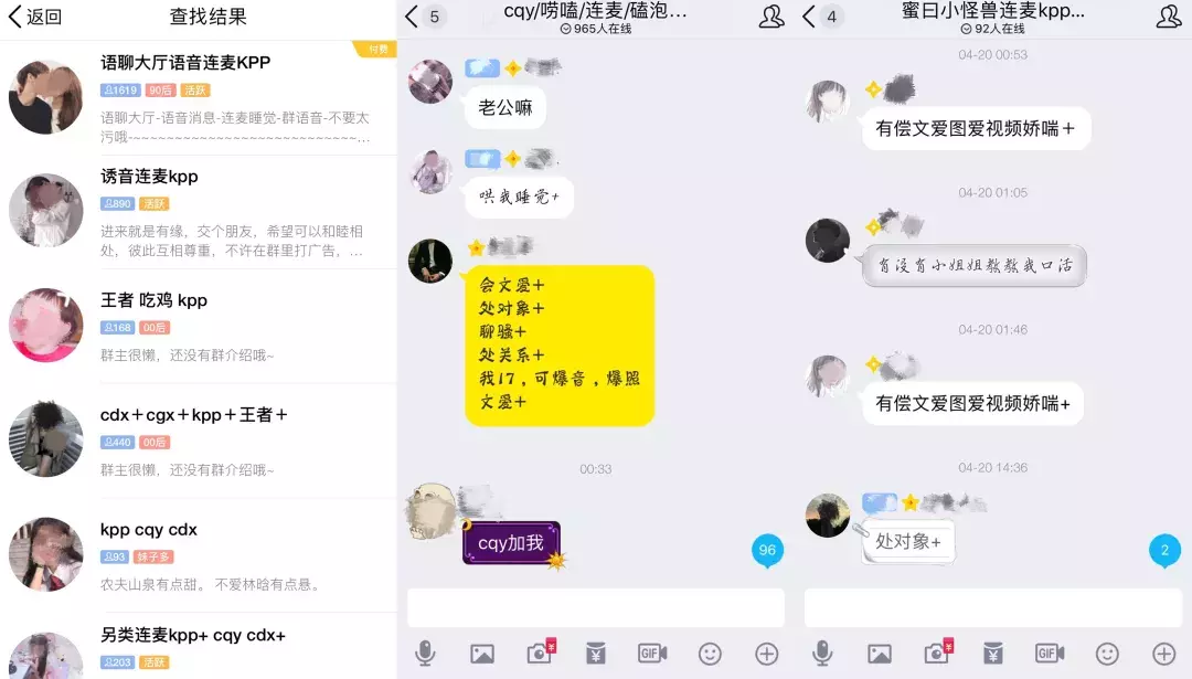 ▲部分QQ群以“磕炮(kp/kpp)”为主题,不乏未成年人参与,甚至有“有偿”服务。