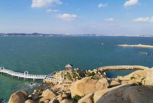 大福湾最有特色的就是"网红小白桥"了,从岸边的礁石堆一路延伸到海中央。涨潮的时候,站在桥头都能用手触摸到海水。而且背靠着将军山,有冒险精神的朋友,可以从石头堆一路往下蹦跶到海边。旁边还有一处小沙滩跟人造船,当你站在船头的时候,会让你有种乘风破浪的感觉。