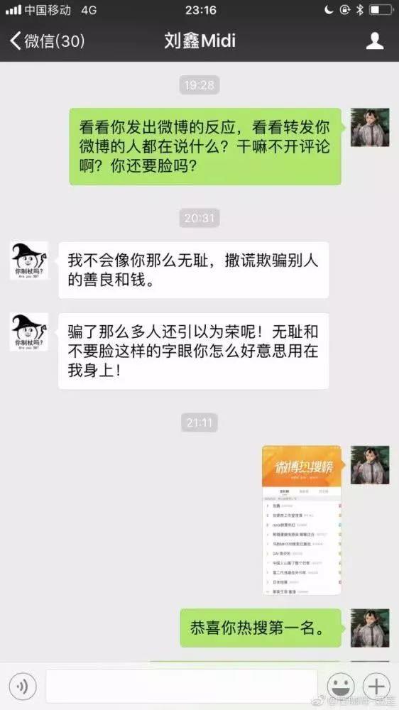 而反观事件的当事人刘鑫,她一边有预谋的消费为她而死的无辜女孩,骂着那个绝望的妈妈,一边迫不及待地烫一个美美的新发型,更改姓名,游山玩水,继续着事不关己的全新人生,这才是她被网友们憎恶、被微博管理员关停账号的原因吧。