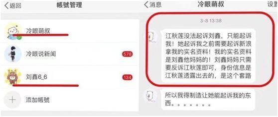 刘鑫经常与@冷眼萌叔、@冷眼说新闻等微博账号互动,网友称,这些账号背后都是刘鑫的团队在运作。
