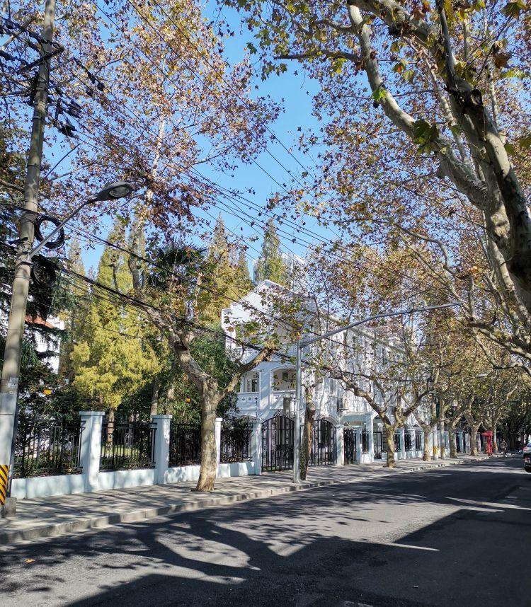 周末的上午阳光正好,一扫前几天的阴霾,走在上海街头,感觉还是有点冷,虽然现在上海还没有真正入冬,但是路上的行人都已经穿起来了厚厚的冬衣,我们朝着常熟路一路前行,打算由五原路慢慢逛到武康大楼,因为五原路是一条有名的名人街。