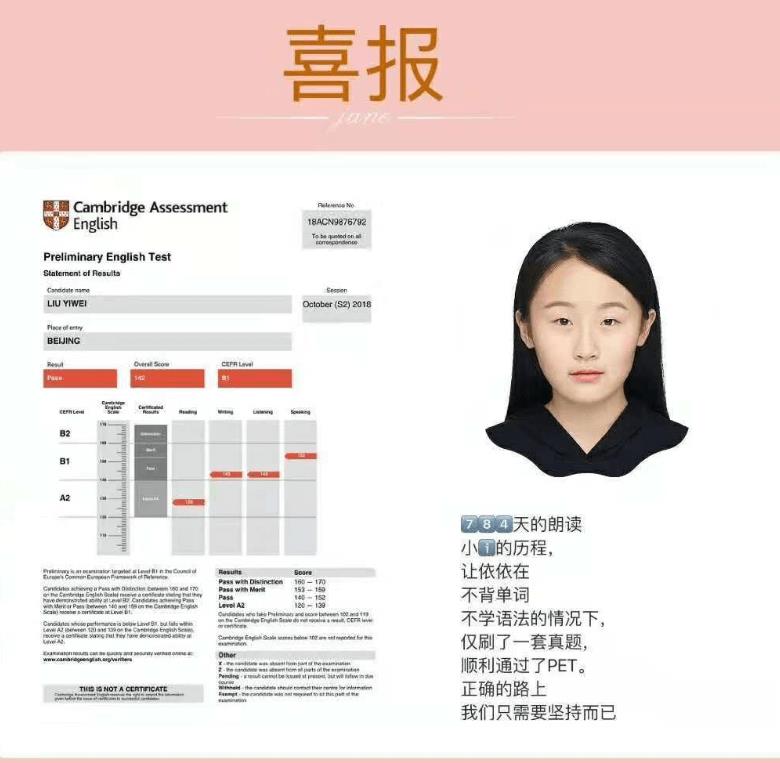 五年级,祼考,沒准备,轻松通过PET。读了784天,120万单词量,3000本书。