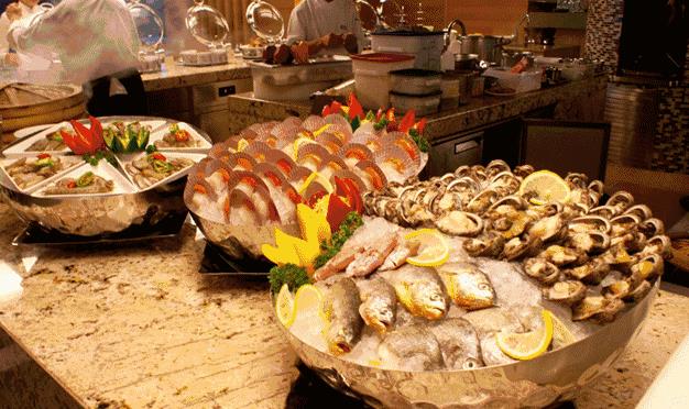 海鲜自助、中华热菜、日韩料理、川菜、粤菜、西餐、特色广式点心、小吃、水果饮料等数百种美食,每餐提供近300个菜品劲爆你的味蕾!
