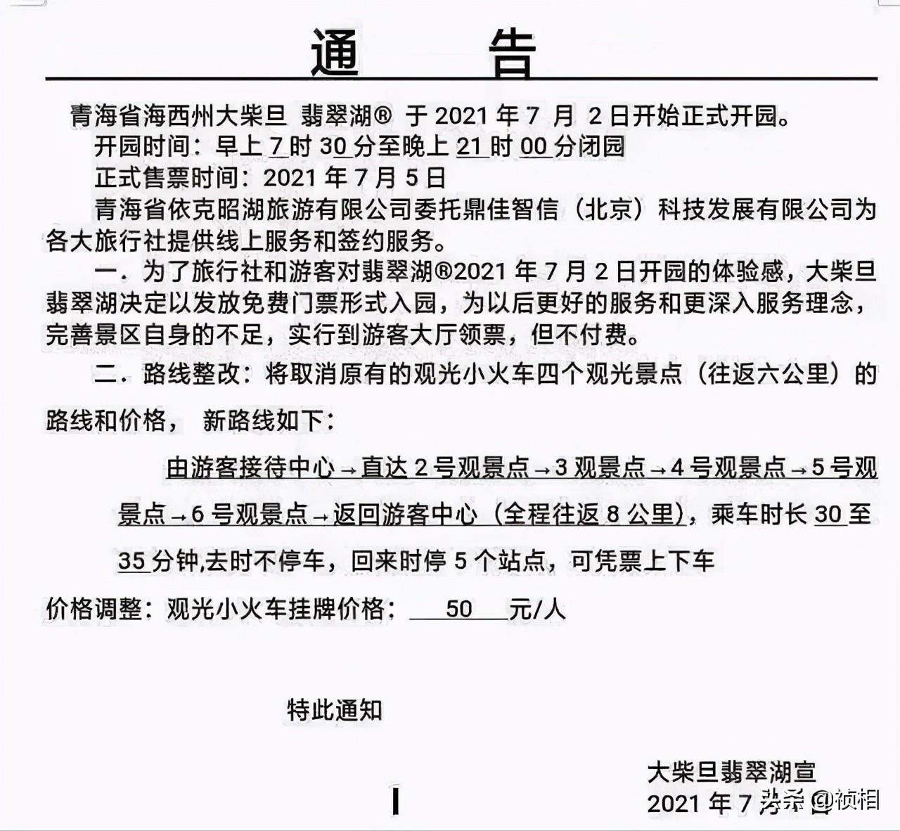 进入7月,原来免费的大柴旦翡翠湖要收费的消息实锤了!进入景区要坐观光的小火车也涨价了!
