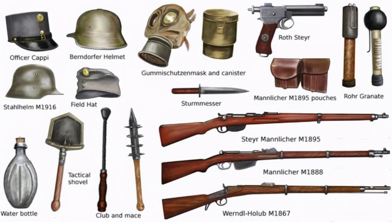 而奥匈帝国,则直接将古代传统狼牙棒列装给部队使用。