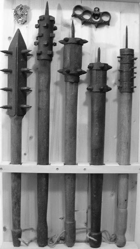 但具体镶嵌了啥,完全看制作者的心情。甚至有一些士兵将失效的迫击炮弹去除引信后镶嵌到木柄上。