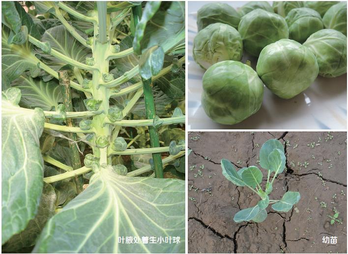茎干直立,植株高大,叶片为长柄匙状叶,每叶的腋芽均可以形成乒乓球大小的完整甘蓝球,每个小叶球均由40多片球叶包裹而成。喜冷凉气候,生长的适宜温度为18~22℃。耐寒性强,可耐-3℃的短期低温而不受冻害。但耐热性较弱,温度高于23℃,结球不良。不耐干旱,适宜在黏质、深厚、肥沃、排水良好的土壤上栽培。随着小叶球的不断膨大,要掰掉中下部的长柄叶,防止小叶球因叶柄的挤压而变形。