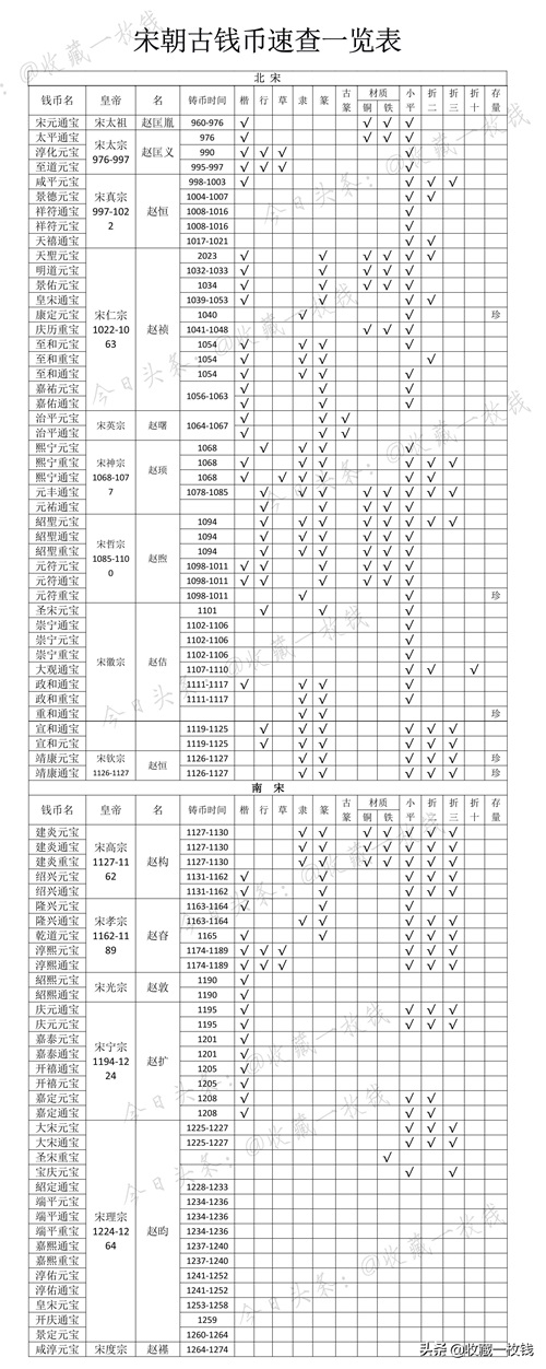 宋朝钱币速查一览表