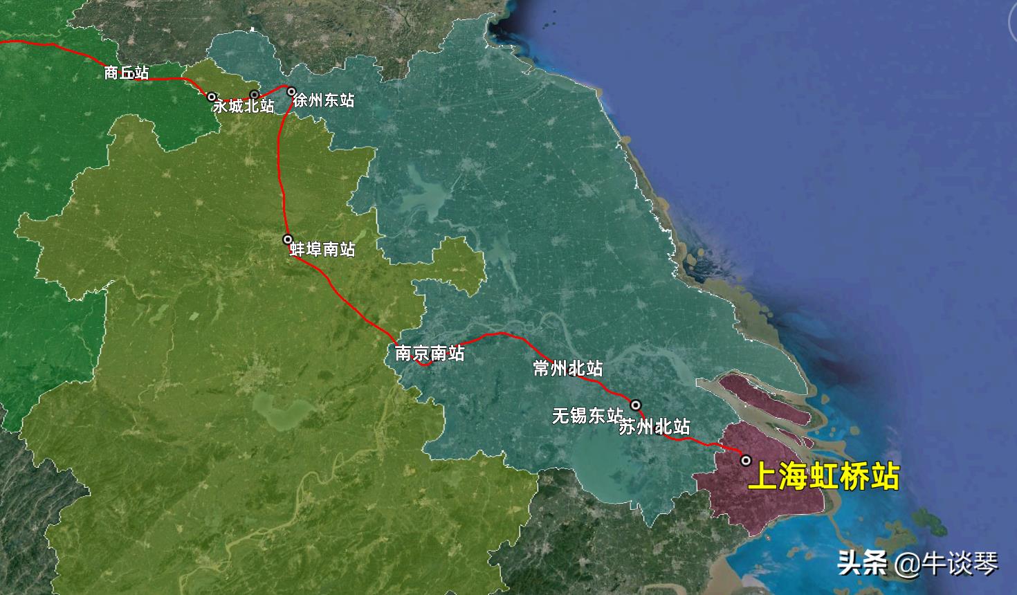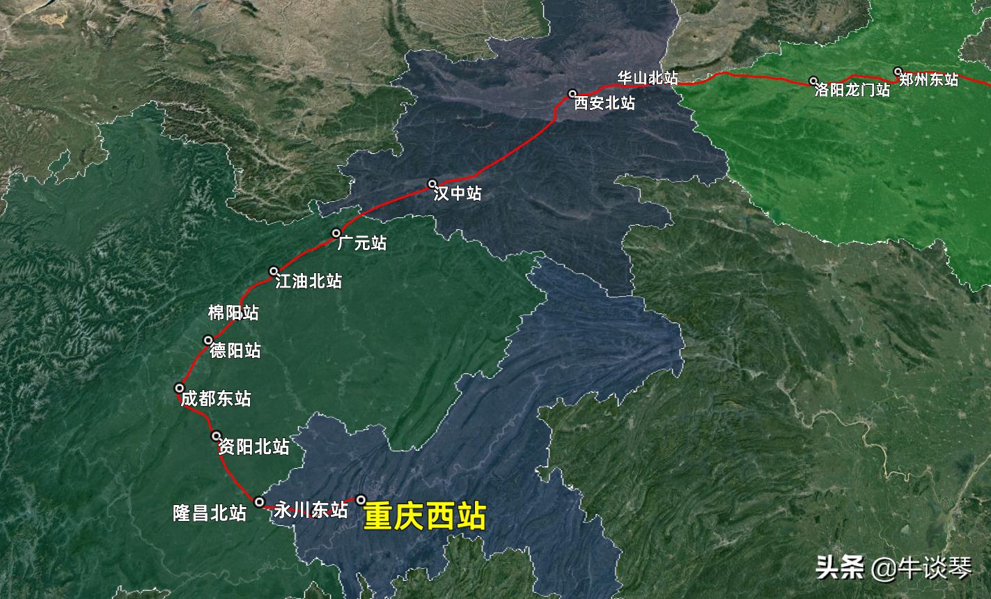 发站:上海虹桥(07:17)到站:重庆西(20:19)候车:2AB餐车:09里程:2469公里二等:1078一等:1749.5历时:13时02分注:文中所有线路图均为作者“牛谈琴”原创绘制,如需转载请注明出处!