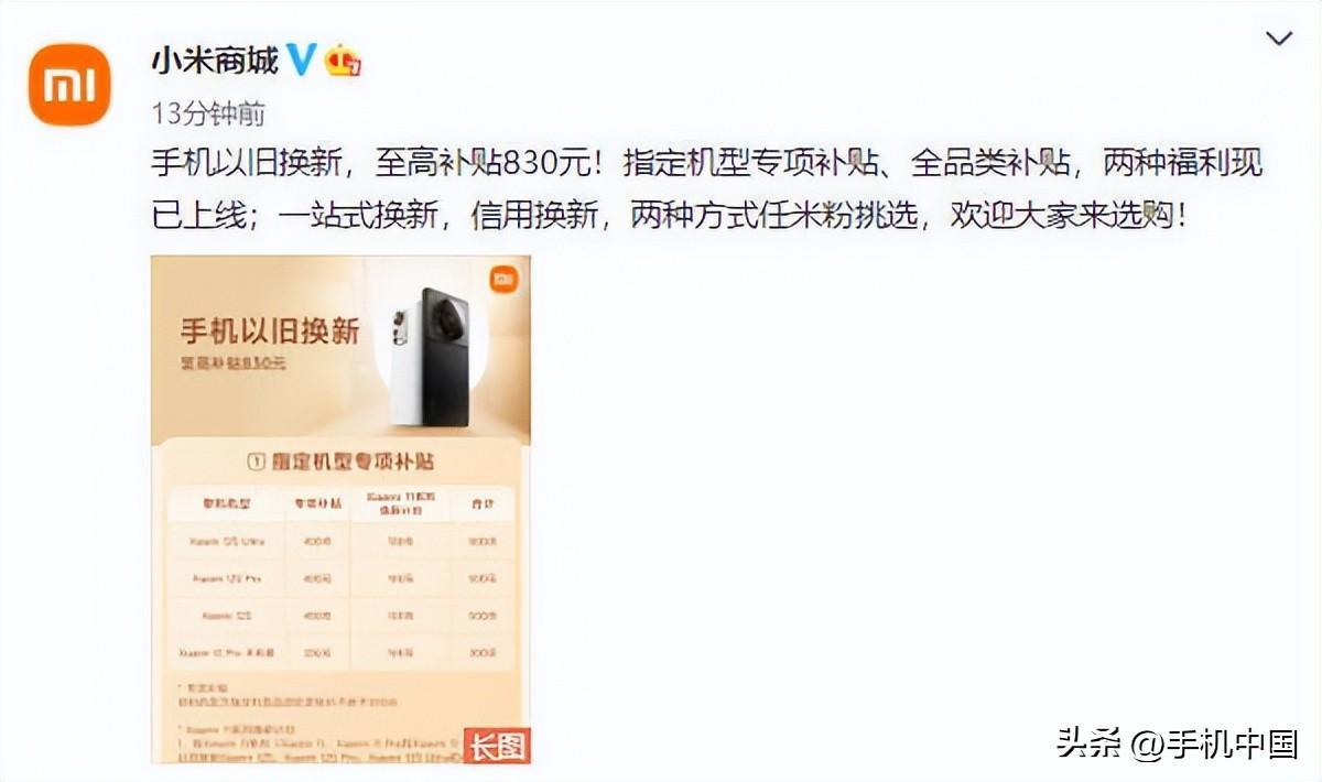 小米手机以旧换新至高补贴830元!还支持信用换新