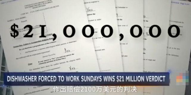 因拒绝星期天上班,洗碗工被酒店开除,起诉获赔2150万美元