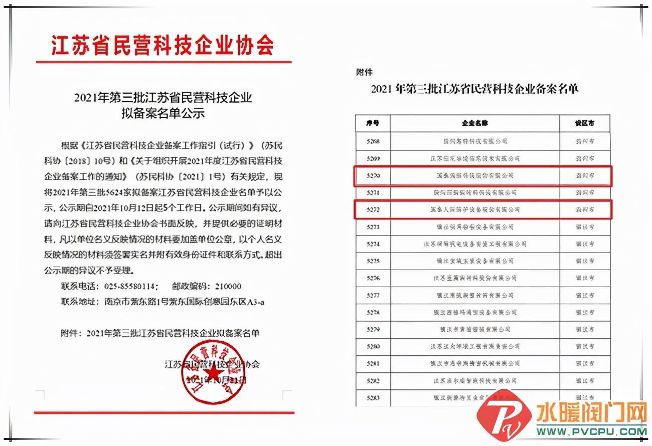 近日,国泰集团下属子公司国泰消防科技股份有限公司(简称:国泰消防)、国泰人防防护设备股份有限公司(简称:国泰人防;股票代码:835395)荣获“江苏省民营科技企业”称号。