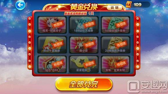 1、积分十连抽券→星星钥匙*5→钻石*388→玲珑双子→188钻石入场券→20级角色升级券→50级坐骑升级券→玄奘法冠→唐小僧
