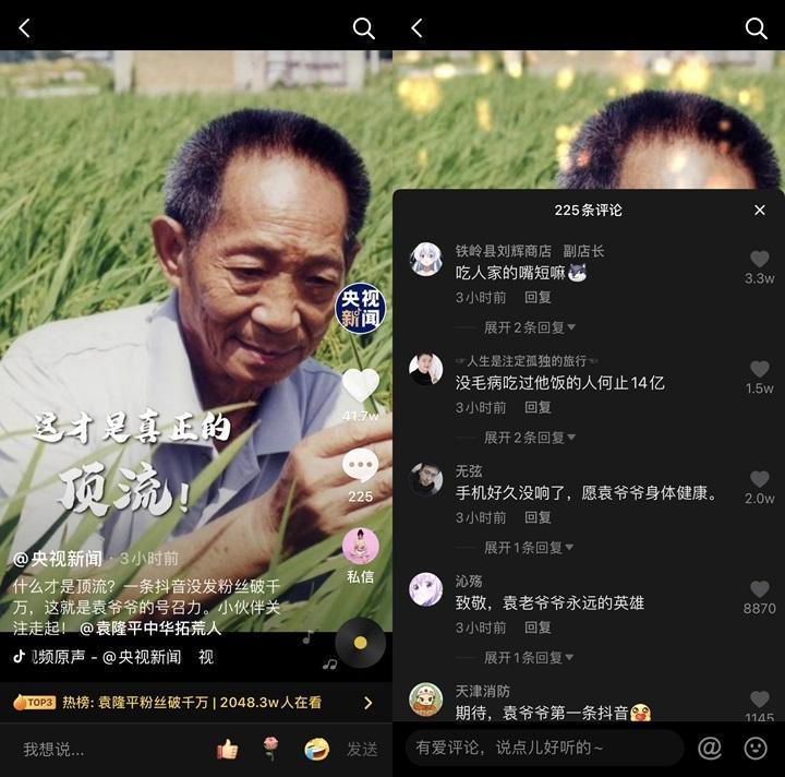 都是吃他家大米长大的:一条消息未发,袁隆平抖音粉丝破千万