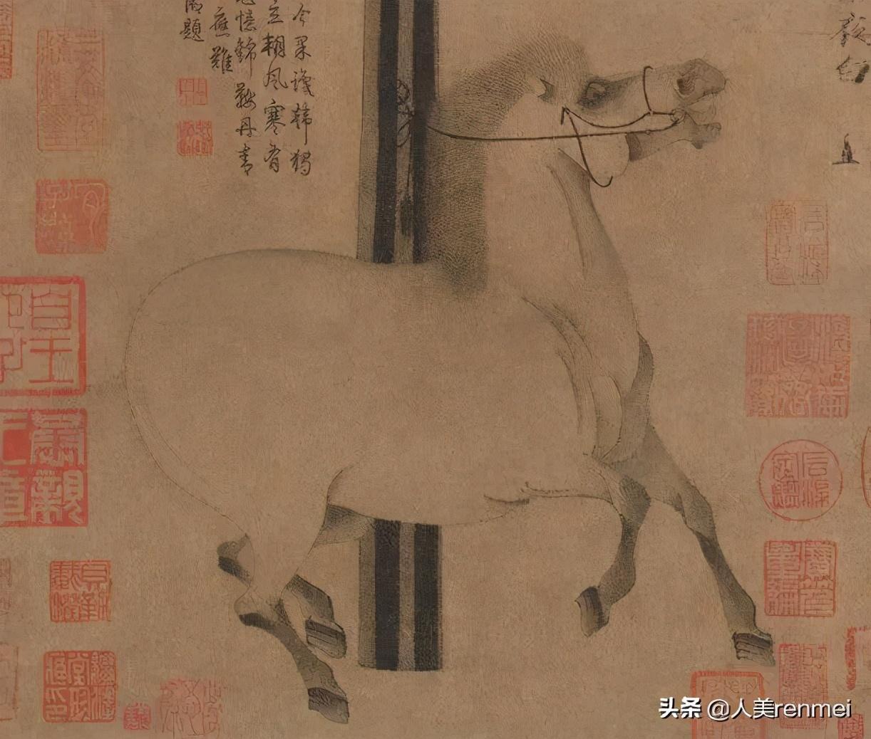 唐人对马喜爱有加,马也成为了唐代艺术家反复表现的对象。这匹名为“照夜白”的马是唐玄宗的坐骑。画家韩幹则是以画马著称,其本身的经历也像幸遇伯乐的千里马。