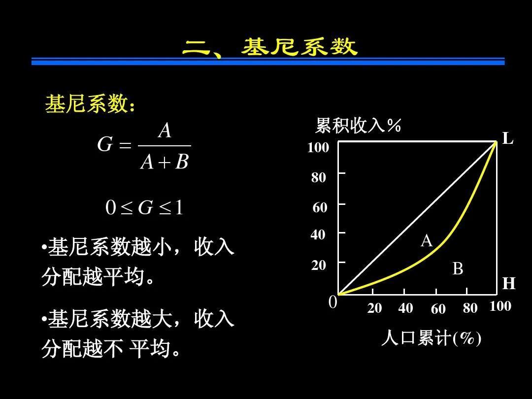 基尼系数:是用来衡量一个国家或地区居民收入差距的指标。