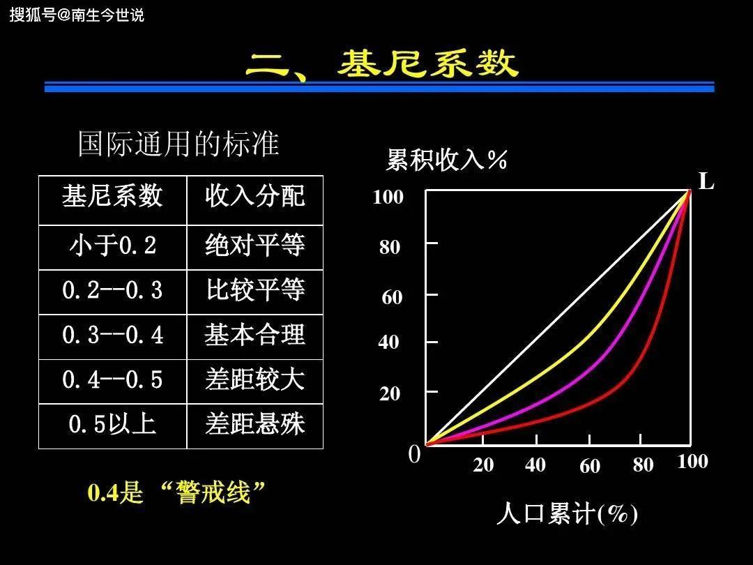 换句话说,就是一个国家或地区居民贫富差距的指数。