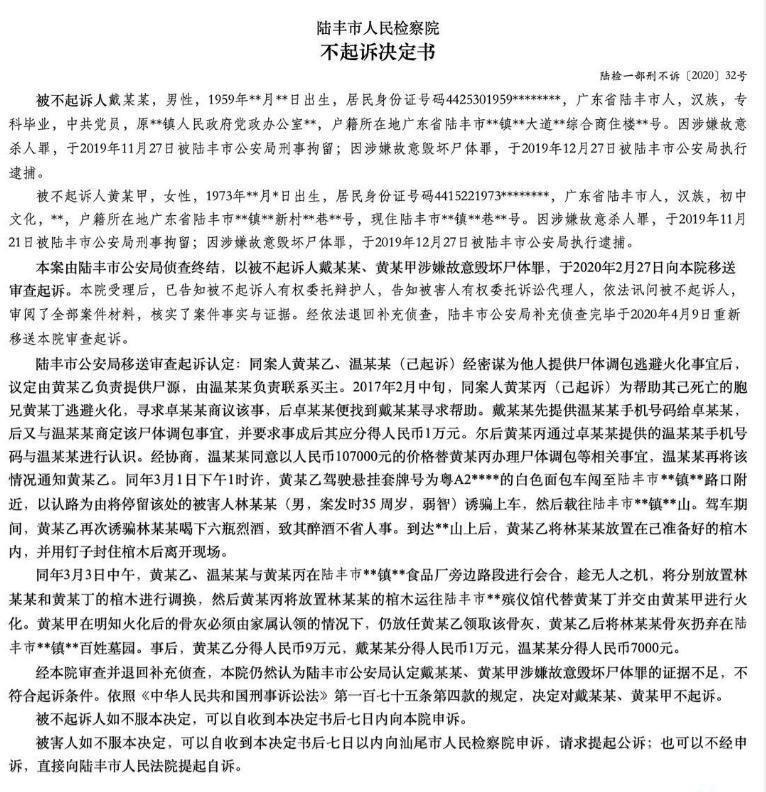 而黄培青和戴龙,则因为对林少仁的死毫不知情,检方决定不予起诉。