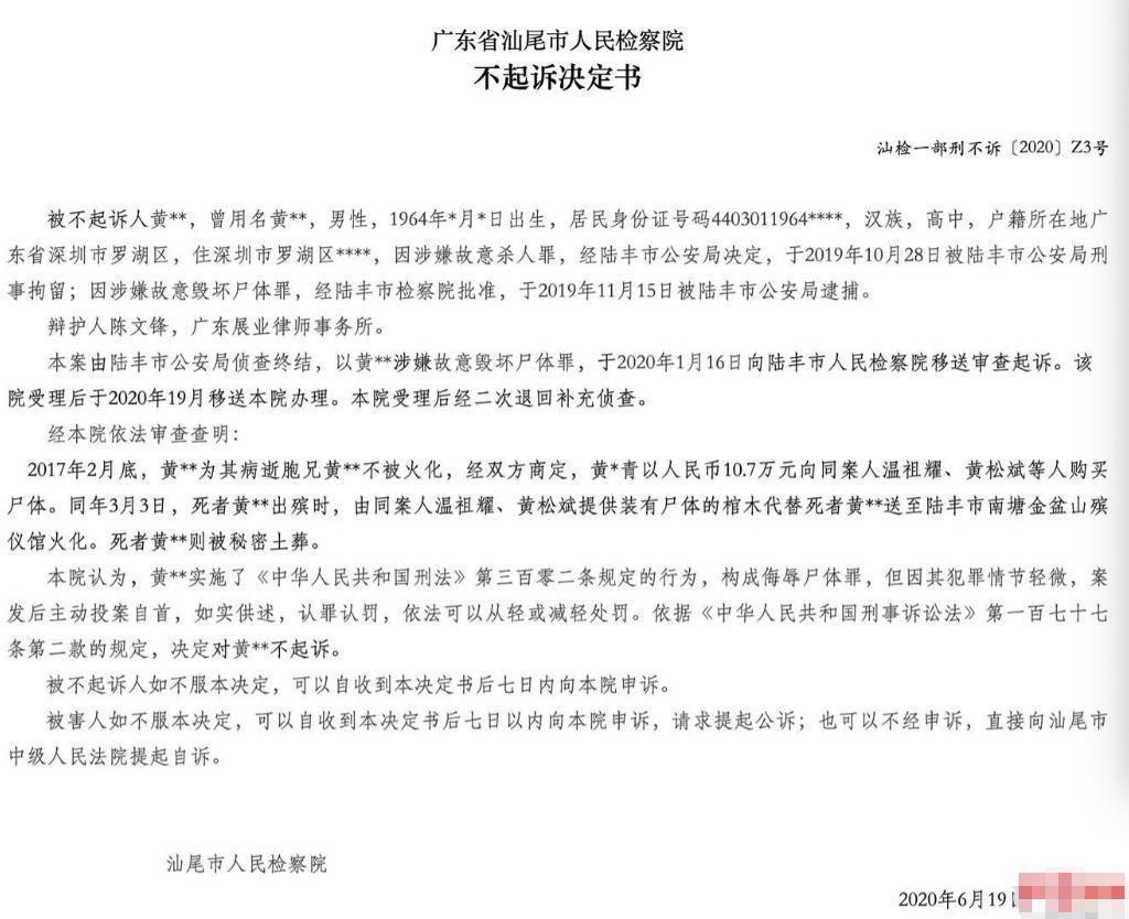 汕尾市人民检察院不起诉决定书