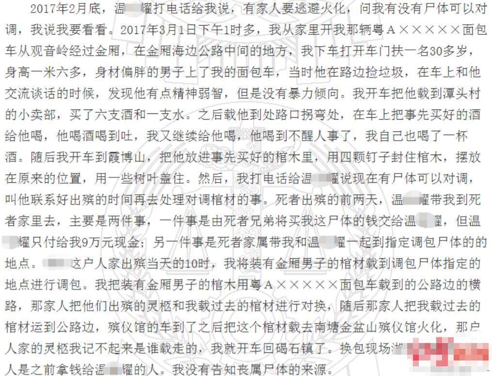 为了完成黄培青安排的任务,戴龙找到了在当地殡仪馆工作的工作人员——温耀(化名),他让温耀留意殡仪馆里,有没有可以代替黄培坚火化的死人。