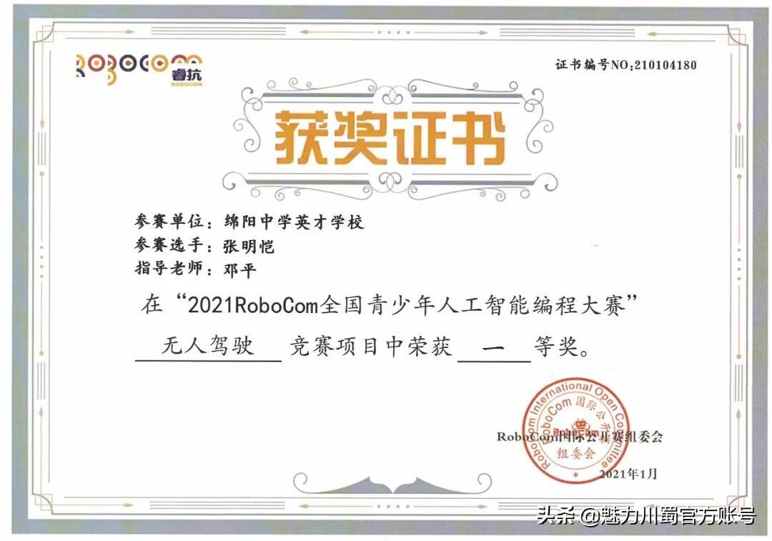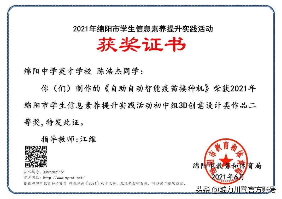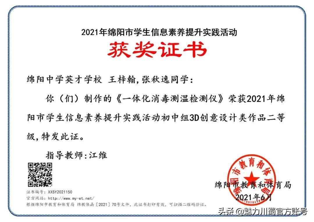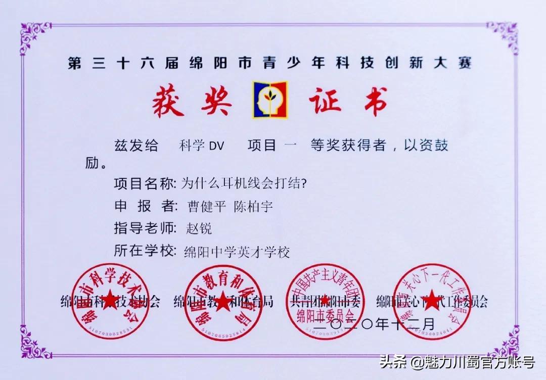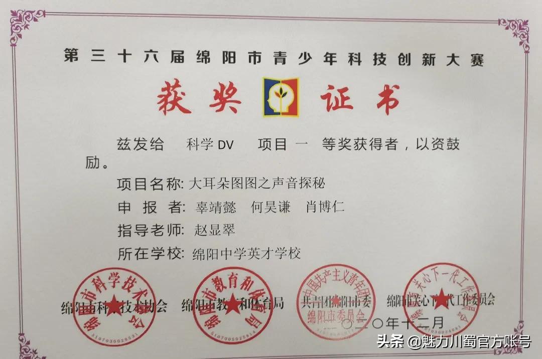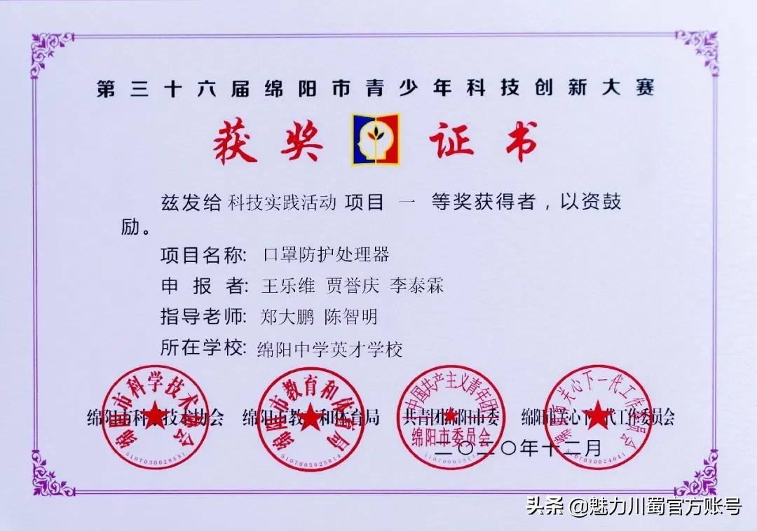 第三十六届绵阳市青少年科技创新大赛一等奖