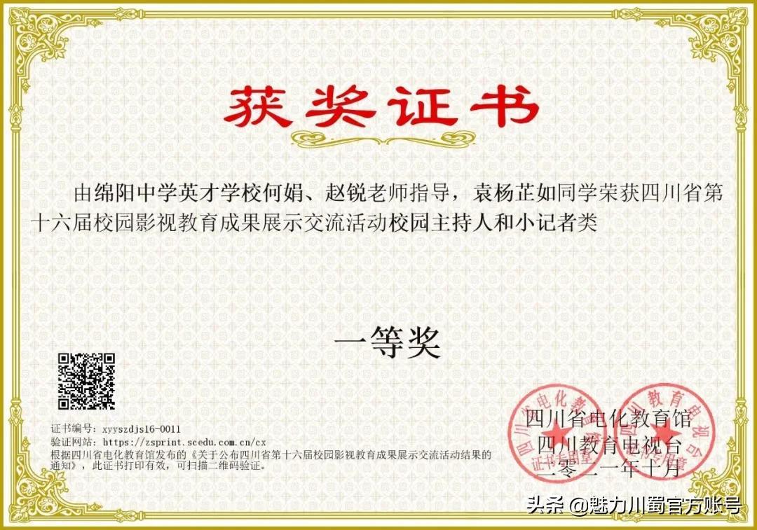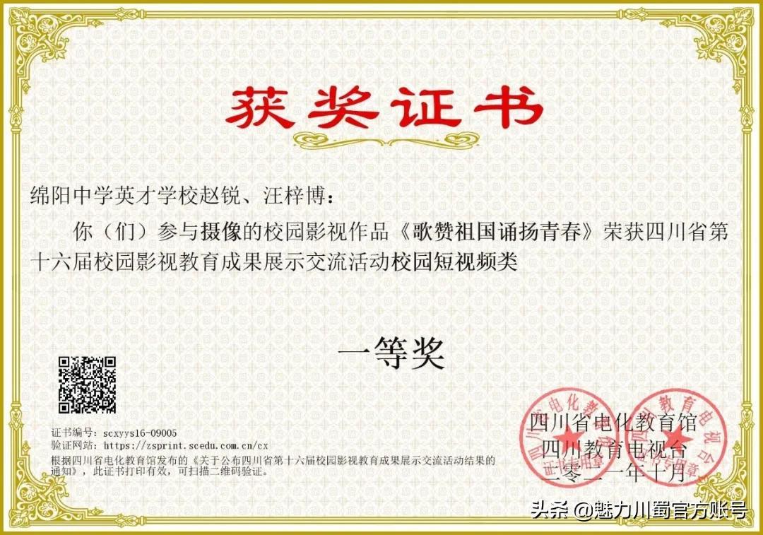 四川省第十六届校园影视教育成果展一等奖