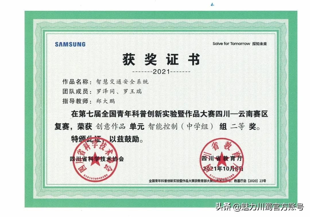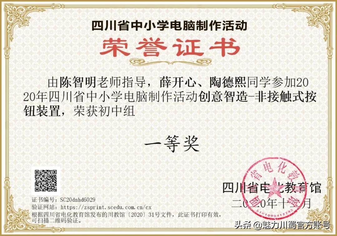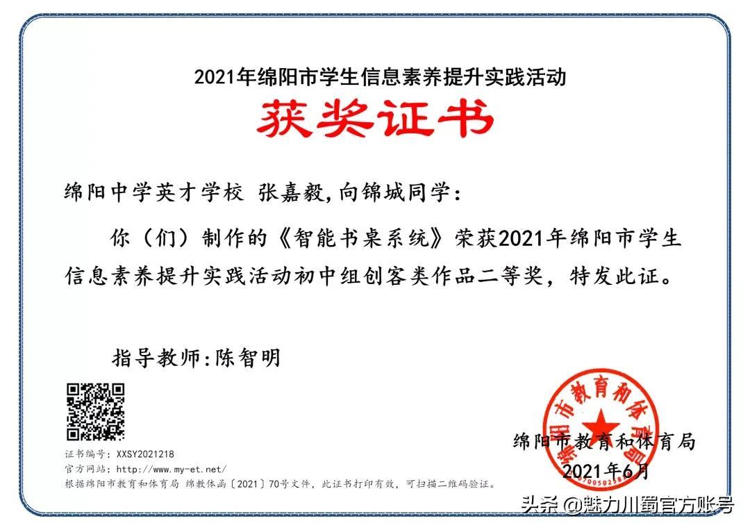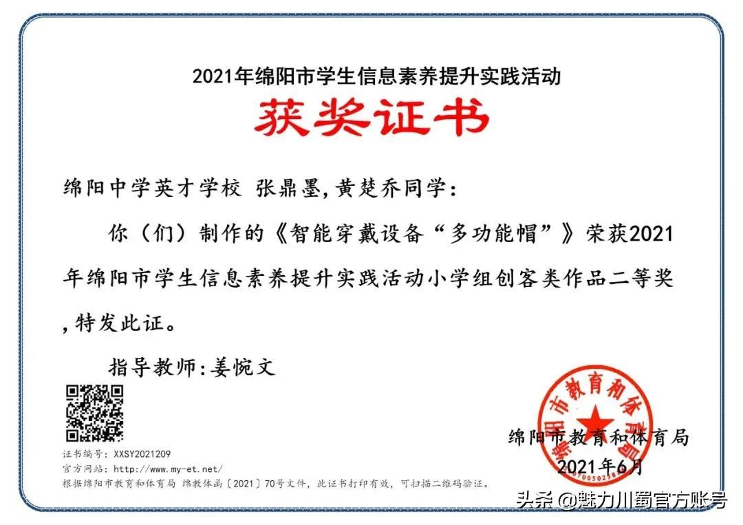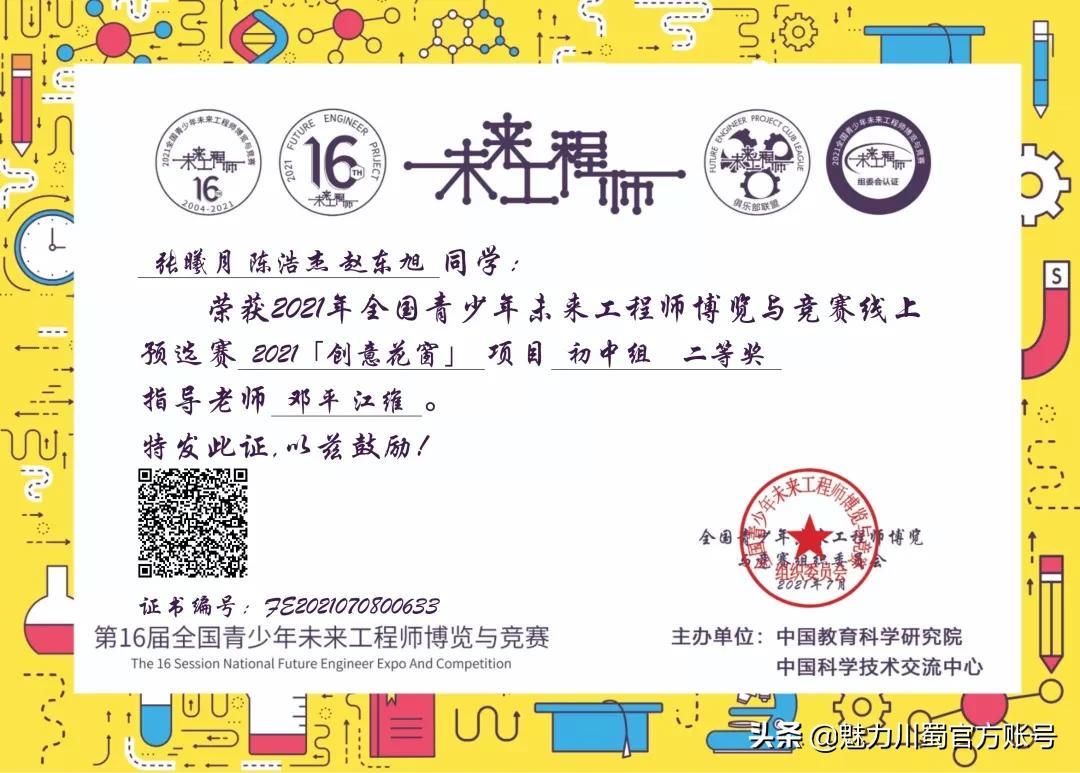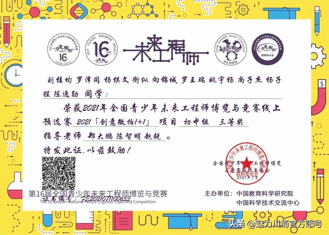 第16届宋庆龄少年儿童发明奖评选,4人获铜奖,2人获创意作品奖,获奖人数居四川第一。