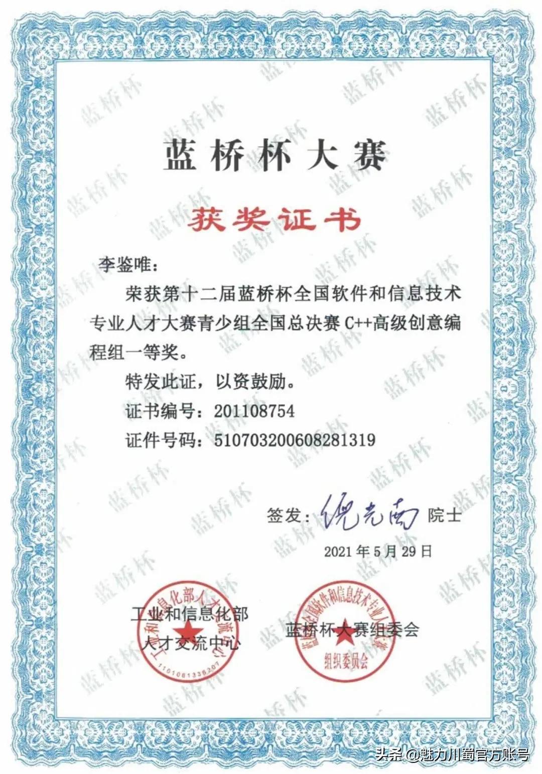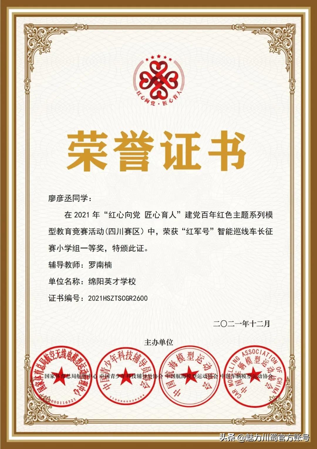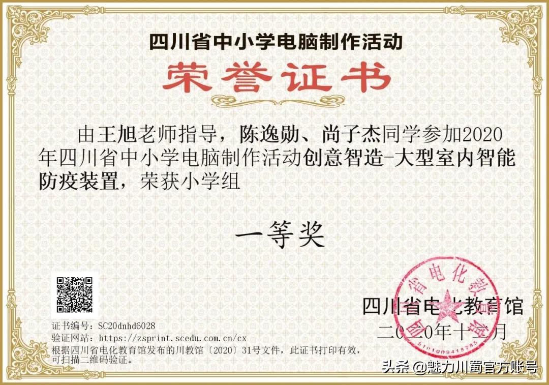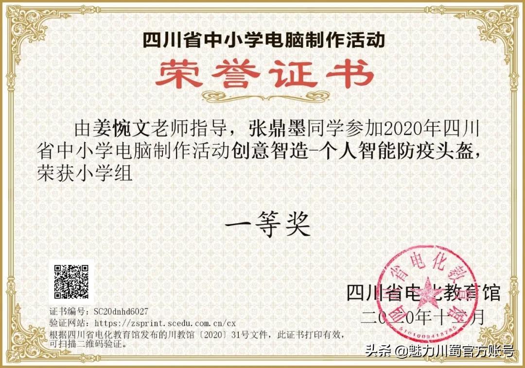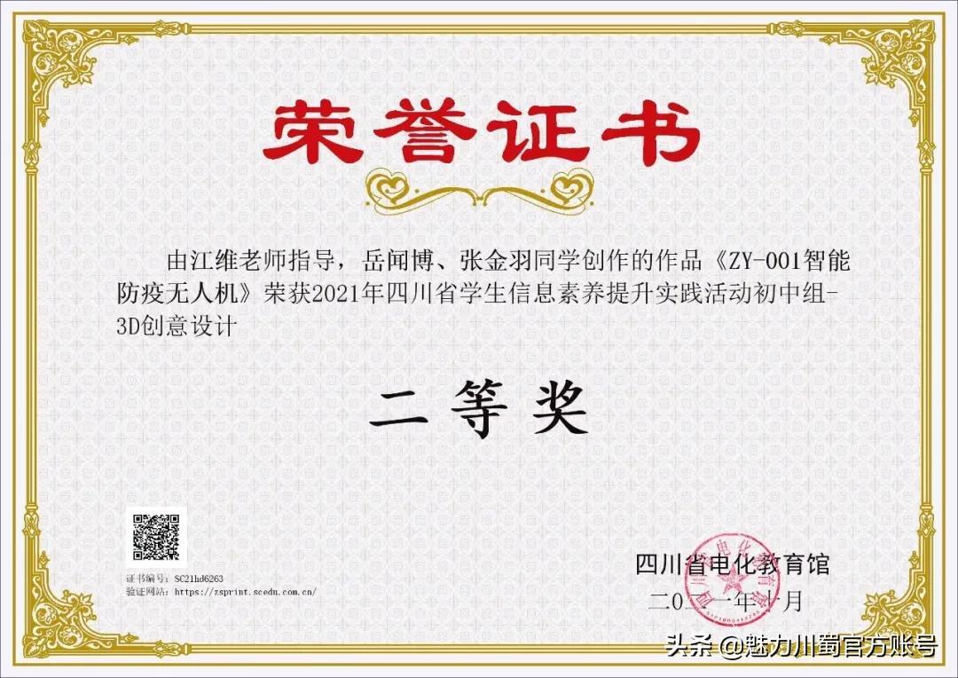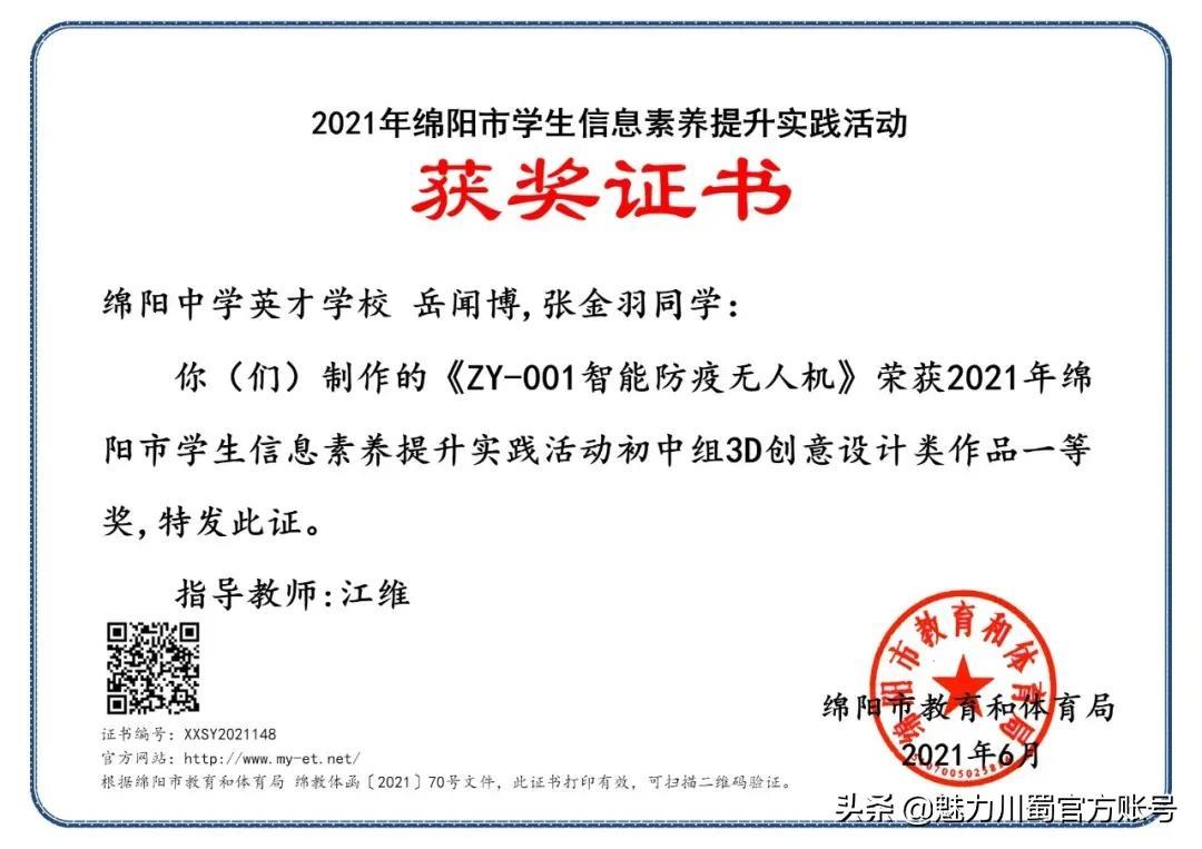 第16届宋庆龄少年儿童发明奖评选,4人获铜奖,2人获创意作品奖,获奖人数居四川第一。